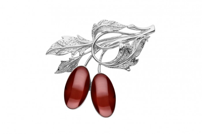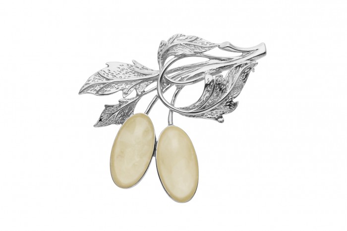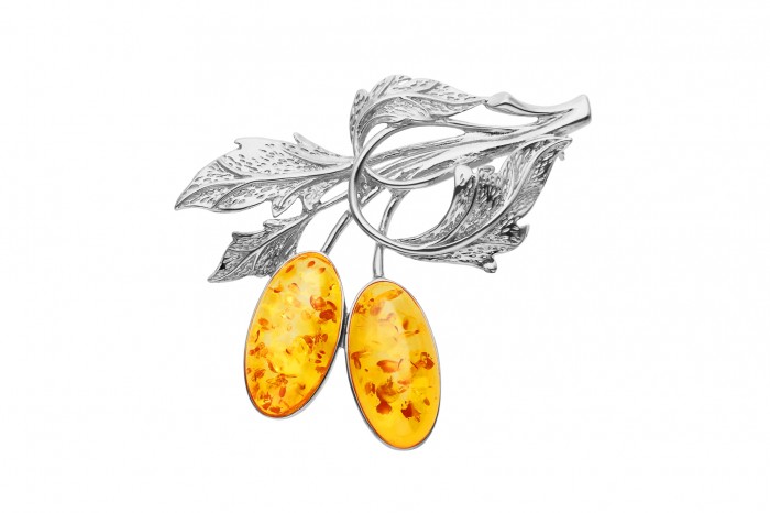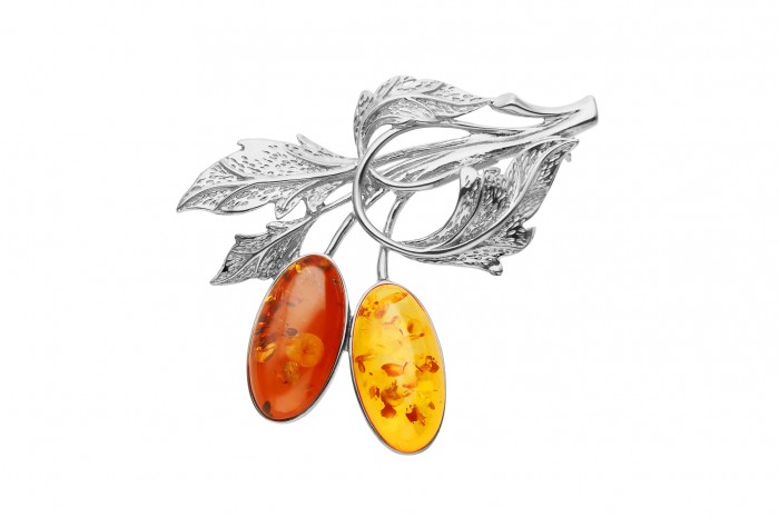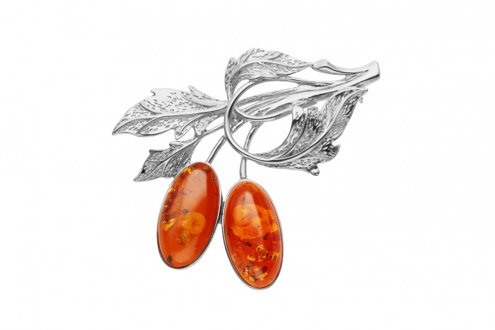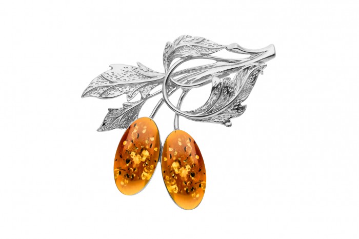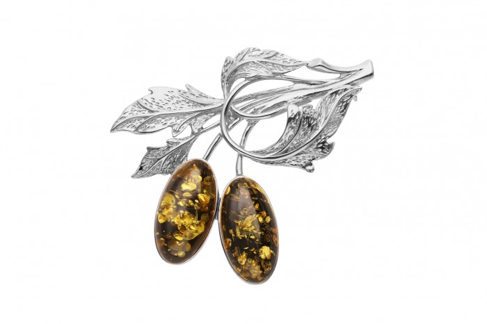 Srebrna broszka z bursztynem