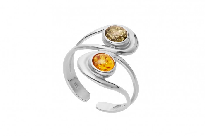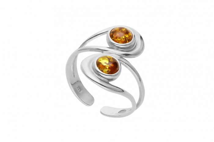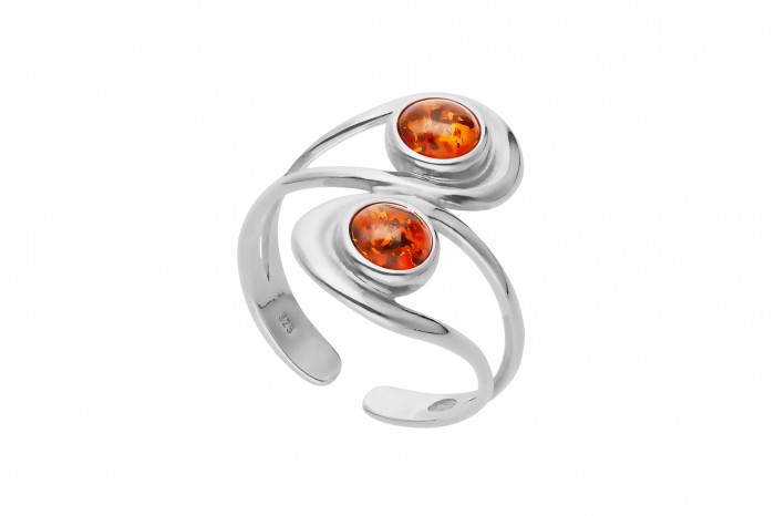 Srebrny pierścionek z bursztynem w rozmiarze uniwersalnym