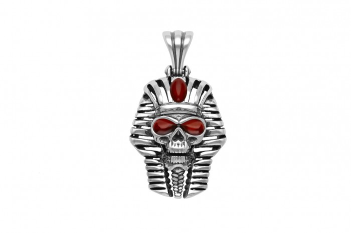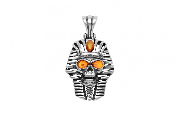 Zawieszka Tutanchamon w oksydowanym srebrze z bursztynem