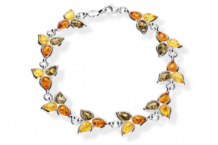 Srebrna bransoletka z bursztynem