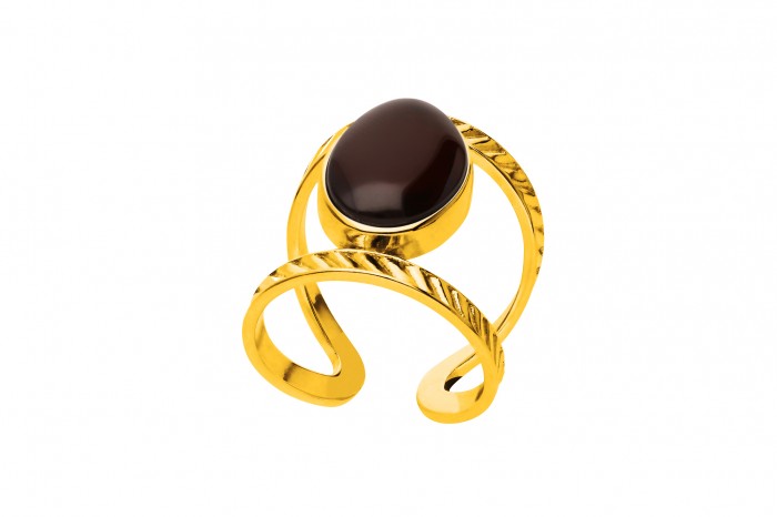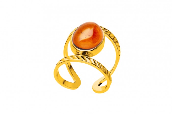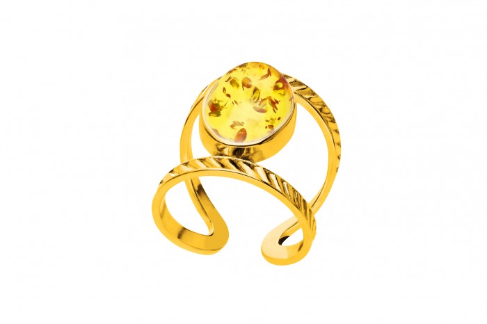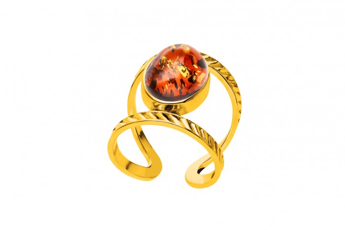 Srebrny pierścionek z bursztynem w rozmiarze uniwersalnym pozłacany 18 - karatowym złotem