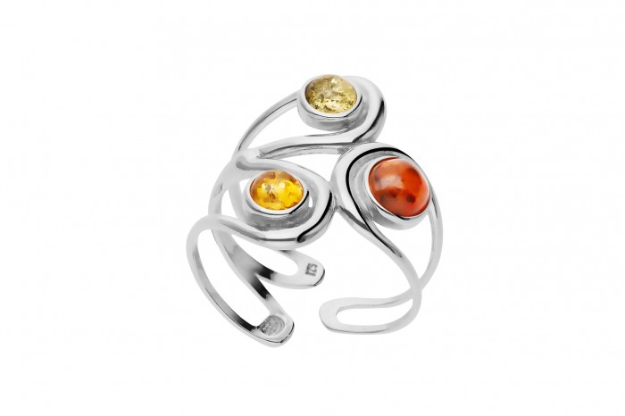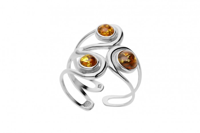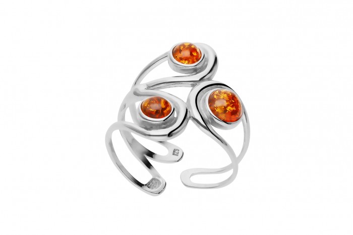 Srebrny pierścionek z bursztynem w rozmiarze uniwersalnym