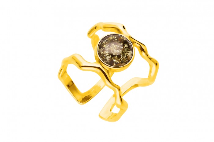 Srebrny pierścionek z bursztynem w rozmiarze uniwersalnym pozłacany 18 - karatowym złotem