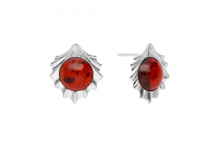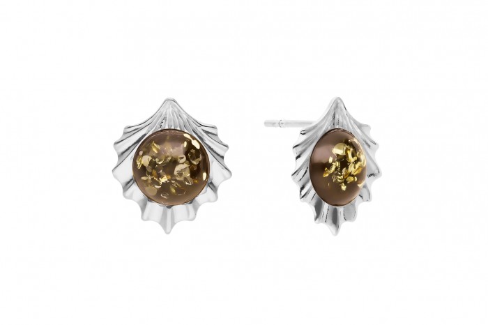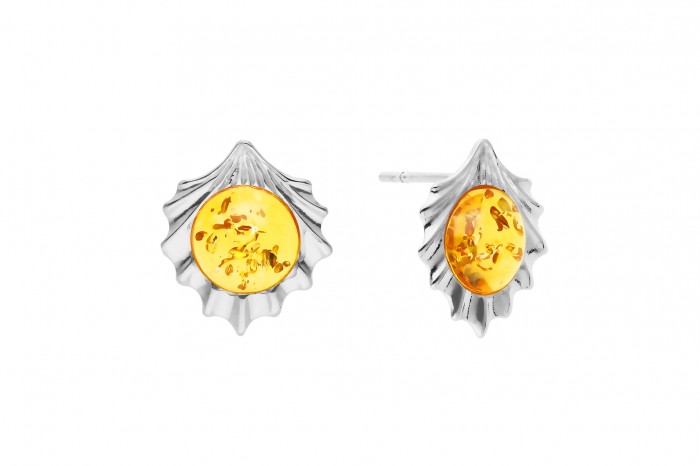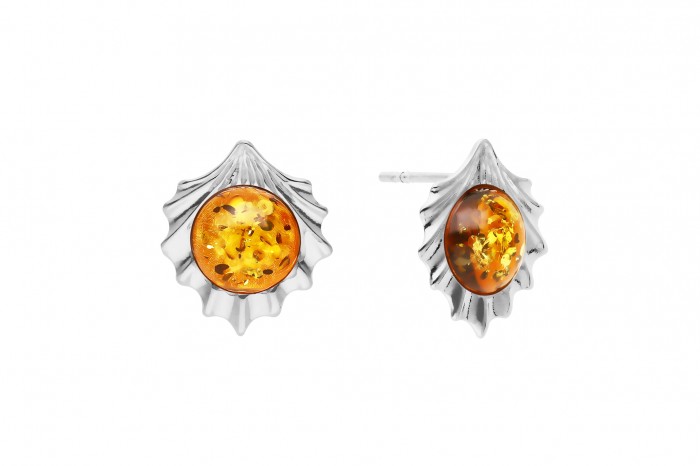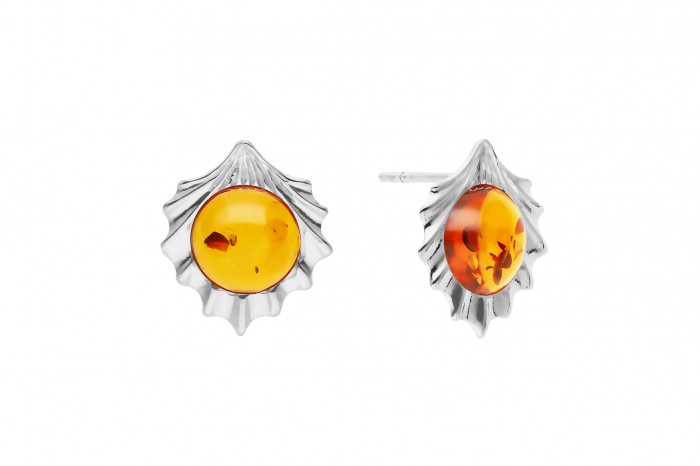 Srebrne kolczyki z bursztynem na sztyft