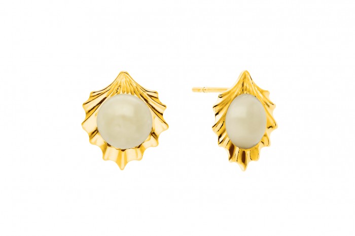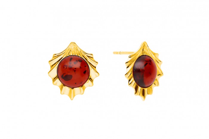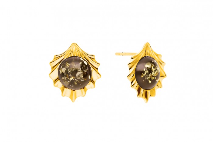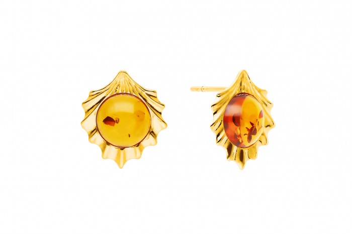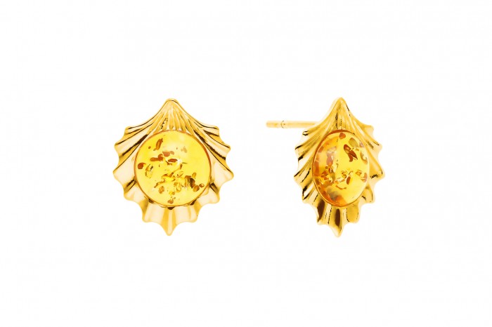 Srebrne kolczyki z bursztynem na sztyft pozłacane 18 - karatowym złotem