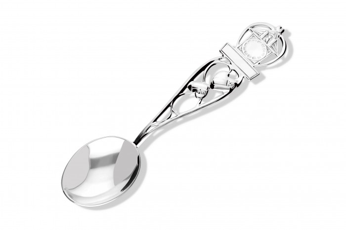 Srebrny upominek łyżeczka z zegarem