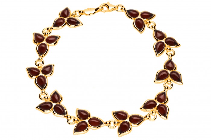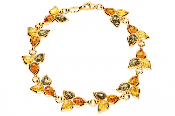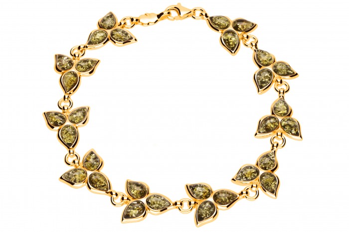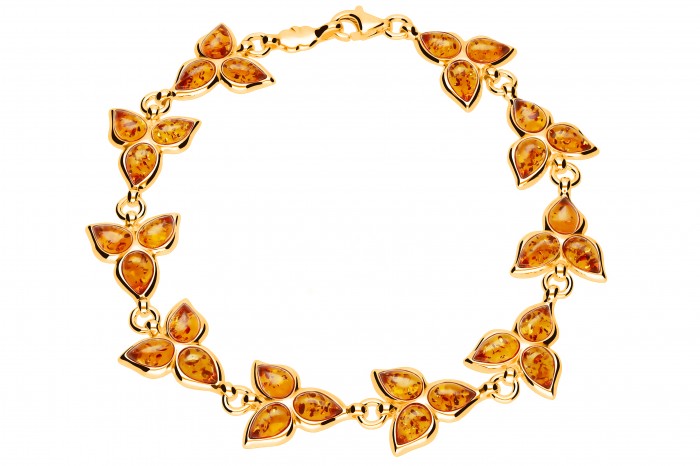Srebrna bransoletka z bursztynem pozłacana 18 - karatowym złotem