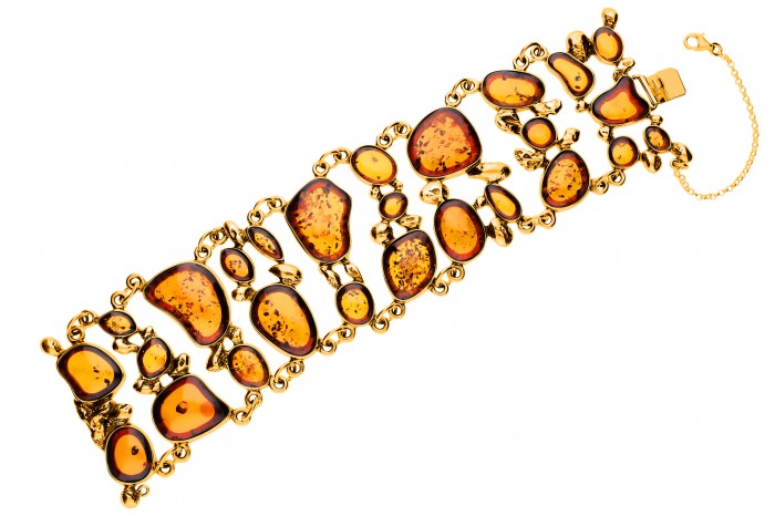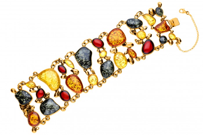 Srebrna bransoletka z bursztynem pozłacana 18 - karatowym złotem